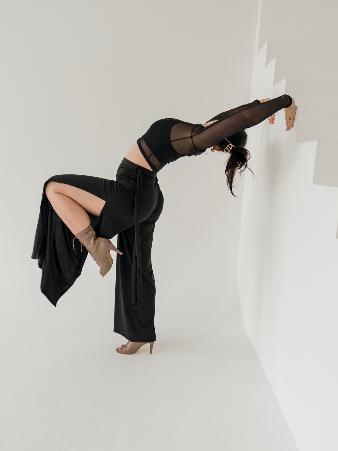 Spodnie damskie Alalia pięknie komponują się ze zwykłym T-shirtem, crop topem, stanikiem czy body. Sprawdzają się jako spodnie do tańca współczesnego, towarzyskiego, bachaty, salsy czy na trening high heels lub exotic dance.