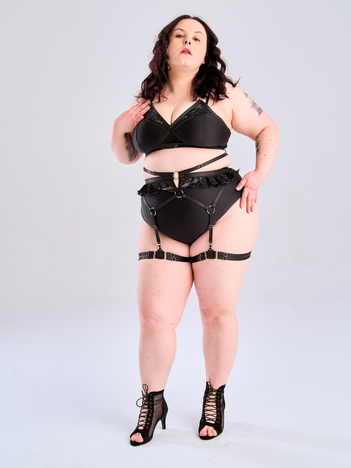 Jeśli górna część harnessa Lyra jest jak szept, to dół jest jak dotyk — delikatny, kobiecy i sensualny, ale jednocześnie pełen charakteru. Masz czasem ochotę dodać swoim stylizacjom więcej kobiecości, ale w subtelny, romantyczny sposób? A może chcesz podkreślić biodra i talię, jednak bez agresywnego vibe’u typowych harnessów? Właśnie dlatego stworzyłyśmy Lyra Bottom — dodatek, który łączy delikatność koronki z wygodą i elastycznością pasków.